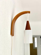 "Philips" wall lamp with Scandinavian design by Louis Kalff from the 1960s. Bent teak wood base and glass lampshade which diffuses a very beautiful light. Wall lamp in very good condition and very good quality. The wall light is signed "Philips" on the back. Rare and very decorative model.