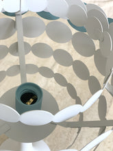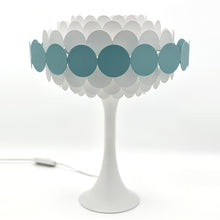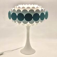 Wonderful blue and white metal lamp by Doria Leuchten Germany, 1960s. Very decorative with its metal discs and its tulip foot, it marks its presence with its original and timeless design which diffuses a superb play of light.