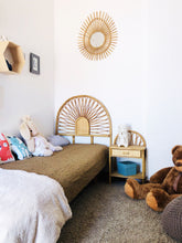 Rattan & bamboo headboard from the 60/70's. Vintage to wish it will give a bohemian style to your nights. On the back there are 2 small eyelets to hang it easily on the wall. It fits perfectly with the bedside table available on the site. 2 units available.